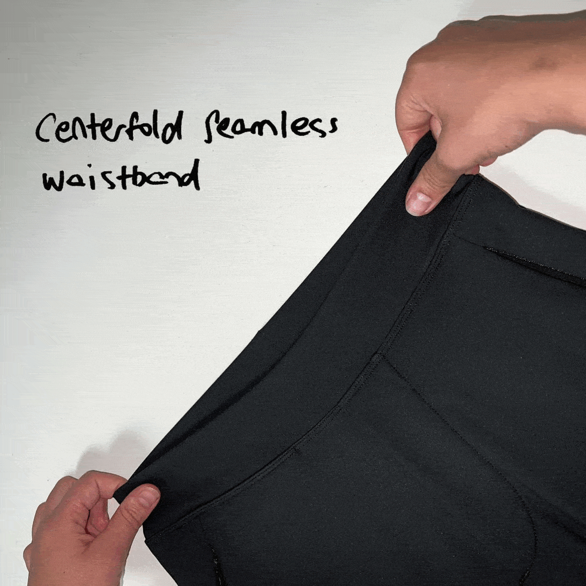The centerfold construction ensures a smooth, even distribution of pressure around the waist, enhancing comfort without compromising on style. Additionally, we chose a shorter 5cm height for the waistband, giving it a lower profile that makes the pant versatile enough for casual and office settings, while maintaining a sleek, non-workout appearance.