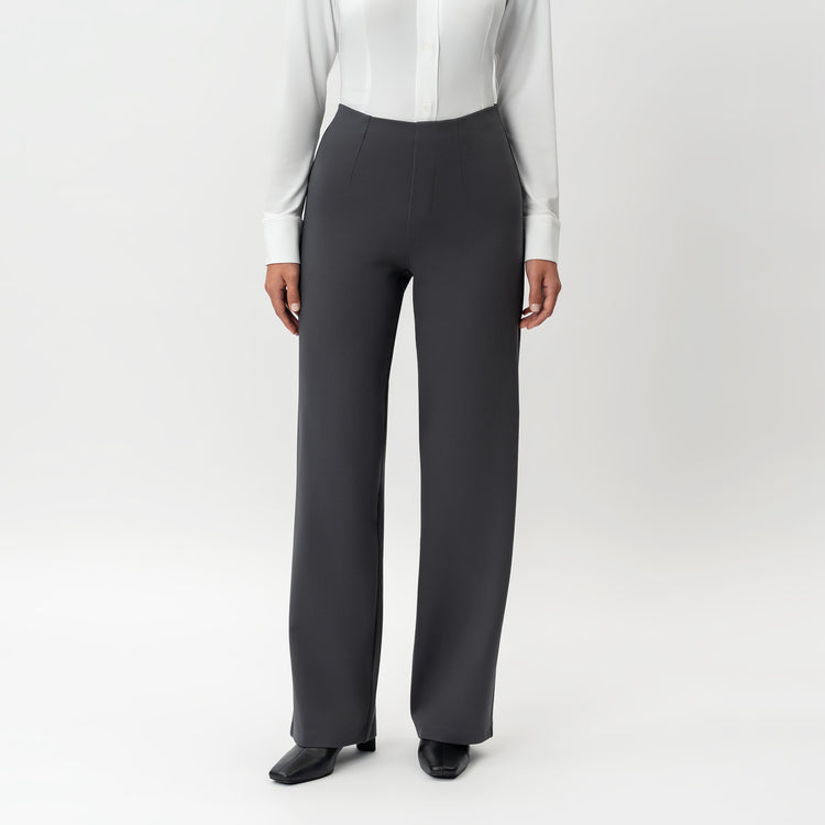 Discover the perfect blend of style and comfort with our tailor-inspired relaxed trousers that are ideal for work and leisure. Featuring an invisible waistband and refined dart details, these trousers are crafted from a luxurious double-knit fabric that is both heavy and soft, with a touch of stretch for all-day comfort.