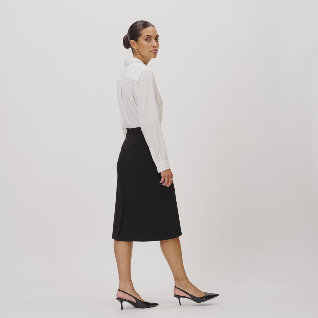 This tailor-inspired midi skirt offers a sophisticated look without sacrificing comfort and features dart details, an invisible waistband design and back slit. It is crafted from a luxurious double-knit ponte fabric that is both heavy and soft, with added stretch for improved comfort.