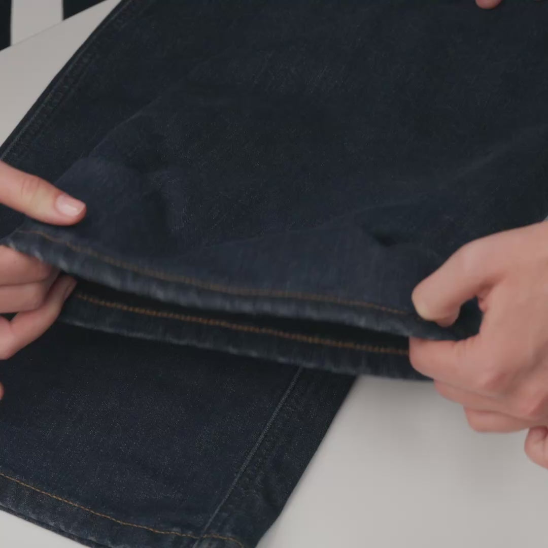 A 12oz stretch denim with the authentic look and texture of classic rigid denim, upgraded with a soft fleece backing for added warmth and comfort in colder weather. Combines heritage character with modern mobility.