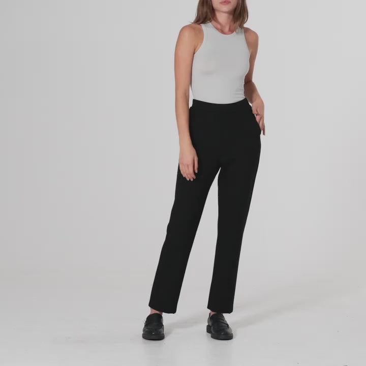 These tailor-inspired trousers offer a sophisticated look without sacrificing comfort. They are crafted from a luxurious double-knit fabric that is both heavy and soft, with added stretch for improved comfort. For an ankle-length cut, we suggest selecting a shorter inseam compared to what you might wear with our Asana Relaxed Pants.
